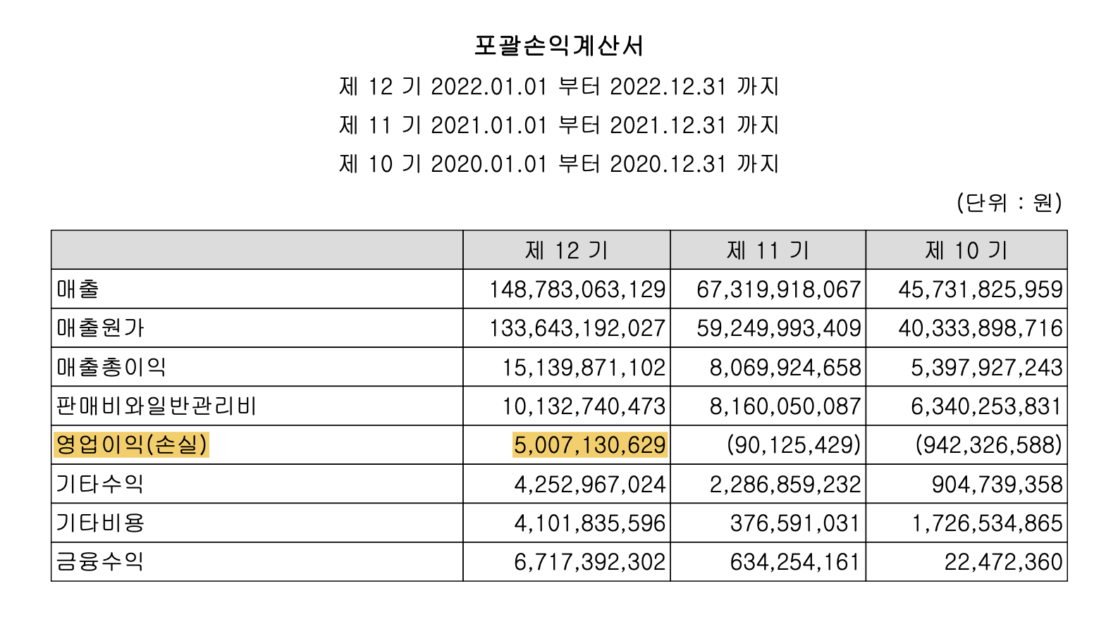 여기서 우리가 필요한 사항은 위에서 이야기 한 사항과 같이 영업이익입니다.